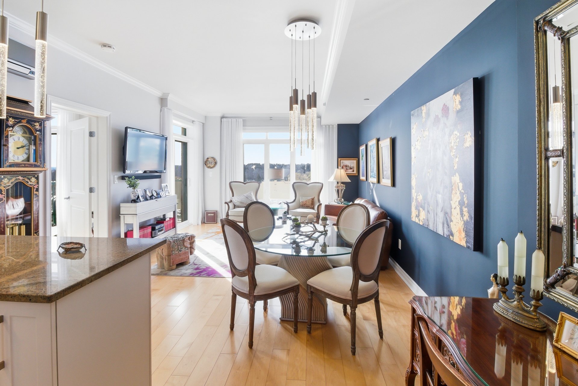 Découvrez l'un des plus beaux condos 1 chambre de l'immeuble, offrant une vue absolument impressionnante sur le golf. Cette unité se distingue par sa cuisine haut de gamme signée Théo Mineault, ses plafonds de 9 pieds et son foyer au gaz qui ajoute chaleur et élégance. Le balcon privé de 10 x 7 pieds permet de profiter pleinement du paysage. L'immeuble est impeccablement entretenu et sécuritaire. Inclus : un stationnement intérieur, un rangement commun ainsi qu'un espace de rangement privé situé derrière le stationnement.